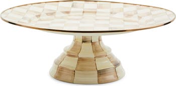 Hand-painted checks are anything but basic on this stainless-steel pedestal platter that adds a dose of panache and personality to your warm, welcoming table.