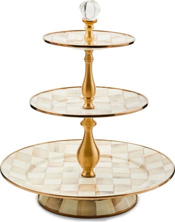 Hand-painted checks and a coordinating knob top are anything but basic on this enameled-steel stand that provides three tiers to display your sweetest treats.