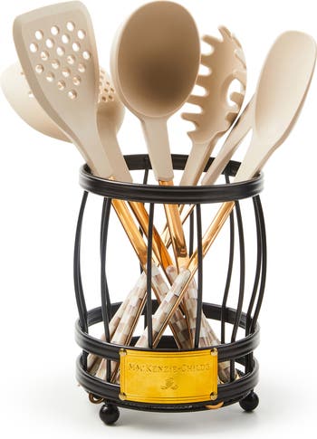 Mocha Check Utensil Caddy Set