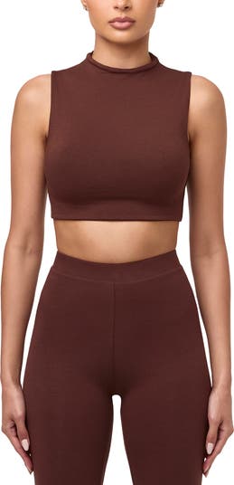 A kiss of stretch enhances the shapely silhouette of this cropped tank made with a high neckline.