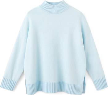 Dropped shoulders enhance the relaxed fit of this woolly mock-neck sweater anchored by ribbed trim and accented with side slits for easy movement.