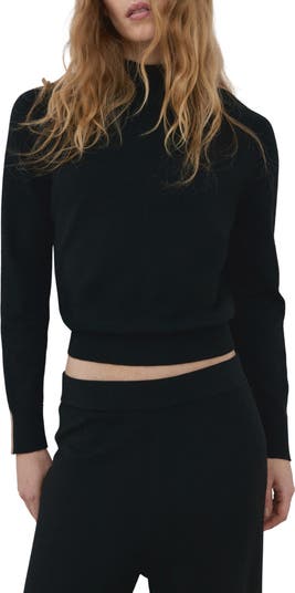 Contrasting ribbed insets punctuate each sleeve of this easygoing mock-neck sweater kissed with wool.