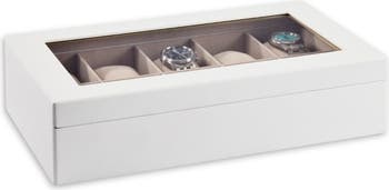 Keep all your watches safe and organized in this elegant wood watch case styled with a glass top and plush velour lining.