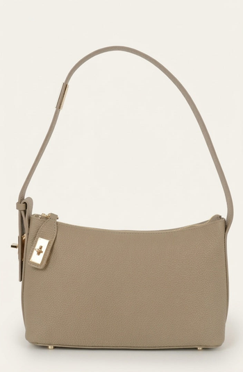 This sleek shoulder bag features a streamlined silhouette enhanced by refined gold-tone hardware for a polished, modern finish. Crafted from top-grade cowhide, it offers a softly textured surface with durable structure that maintains its shape. The zip-top closure keeps essentials secure, while the slim shoulder strap allows for an easy, comfortable carry. Designed for everyday versatility, it pairs effortlessly with both casual and elevated looks.