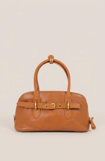 This structured top handle bag features a softly rounded silhouette with refined buckle strap detailing across the front for a polished, timeless look. Crafted from top-grade cowhide, it offers a smooth, durable finish with a naturally rich texture. The zip-top closure keeps essentials secure, while the optional crossbody strap adds versatility for hands-free wear. Designed to elevate both tailored and casual outfits, it brings a classic yet modern edge to everyday styling.