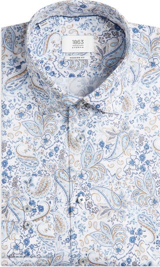 Tailored from a blend of cotton and linen and swirling with colorful flowers and paisleys, this wrinkle-resistant dress shirt makes a bold addition to your semiformal and elevated-casual wardrobes. It pairs well with smooth, solid fabrics, but there's always room for mixing patterns and colors to define your personal look.