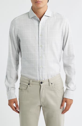 Modern Fit Glen Check Brushed Cotton & Lyocell Dress Shirt