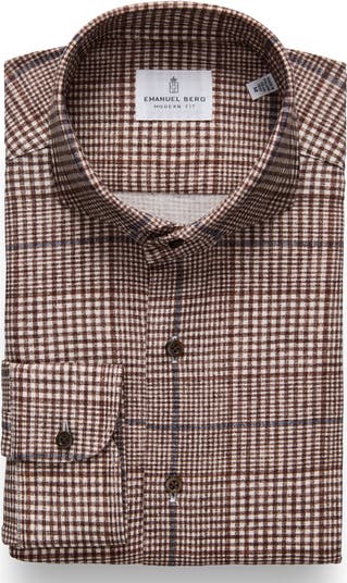 Modern Fit Glen Check Stretch Cotton Knit Dress Shirt
