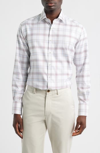 Tailored from crisp cotton and patterned in a smart plaid, this wrinkle-resistant dress shirt makes a bold addition to your elevated-casual wardrobe. It pairs well with softer fabrics and solid colors, but there's always room for mixing patterns and textures to define your personal look.