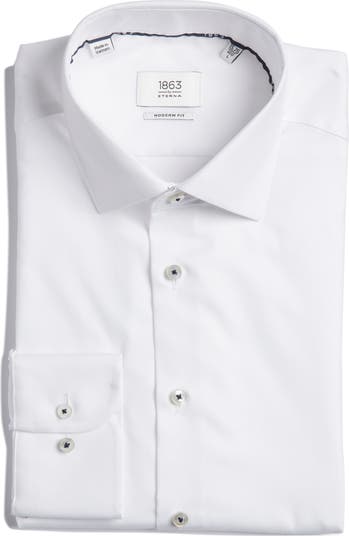 A staple of any well-stocked closet, this dress shirt tailored from crisp cotton oxford cloth features a pointed collar and a simple French placket to keep the styling streamlined and smart. The wrinkle-resistant finish and solid coloring make it a versatile foundation for all your semiformal and elevated-casual looks.