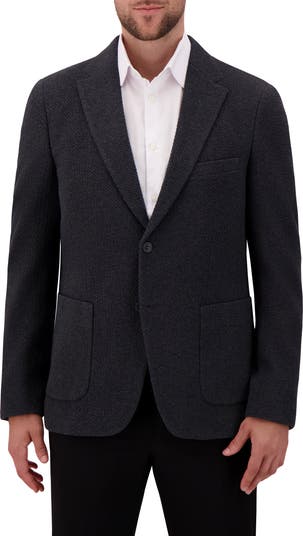 A richly textured cotton-blend knit keeps you moving comfortably and looking smart in a sport coat tailored with lightly constructed shoulders to emphasize its relaxed-formal look. Pair it with softer fabrics and casual pieces for effortless styling on busy days, nights out and even travel.