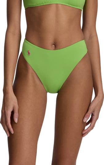 A tiny embroidered pony brings branded appeal to these supercute bikini bottoms made with high-cut legs.