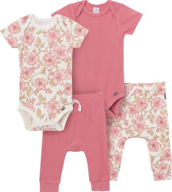 This soft and breathable baby outfit set includes stretch-enhanced bodysuits and easy pull-on pants designed for everyday comfort. Made from exceptionally soft viscose with spandex, each piece offers flexible movement and a lightweight feel that’s ideal for play, rest, or travel. The baby bodysuits feature lap shoulder necklines and leg snaps for quick, fuss-free dressing and diaper changes. The matching baby pants include a stretchy waistband for a secure fit that moves with your little one. Ribbed trim at the neckline and leg openings adds extra durability and helps maintain shape wash after wash. A thoughtful addition to any collection of baby clothes.
