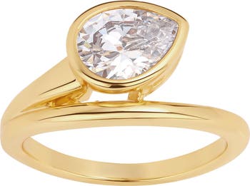 Sleek and sculptural, this wrap-designed ring is anchored by a radiant teardrop-cut cubic zirconia. The 14k gold over brass finish delivers refined shine from day to night.