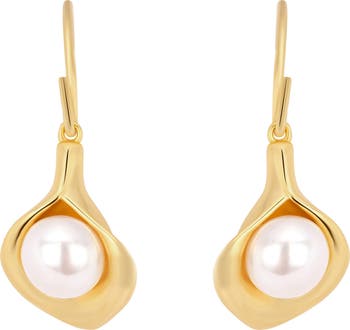 These drop earrings pair luminous simulated pearls with warm 14-karat gold plate over brass for a polished, elevated look. Designed to sway as you move, they add soft shine and refined ease to everything from everyday outfits to special-occasion dressing. Lightweight French-wire hooks keep them comfortable from day to night.