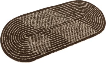 - This modern floor rug showcases soft tufted cotton with a woven line design in an oval silhouette