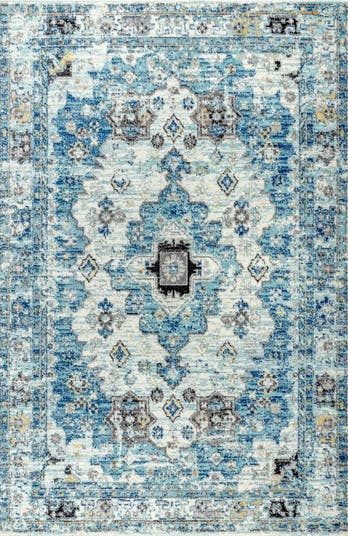 You'd never know its durability from looking at this Modern Persian style, but it's a classic that is built to stand the test of time. While it looks like an heirloom antique, it is made of modern materials woven on a power loom, and is perfect for homes with kids, pets, or high traffic. The lovely shades of turquoise and aqua bring new life to this traditional pattern.
