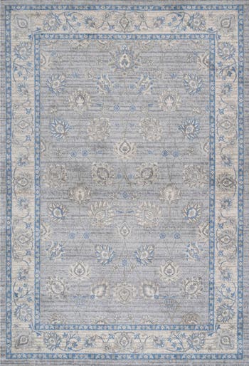 Meticulously designed based on vintage oushak rugs, this design grounds any space with elegance and sophistication. The border of ivory and the floral motif throughout lend a tradition ground on which the monochromatic color offers a modern update. Power loomed from synthetic materials, it is as durable as it is beautiful.