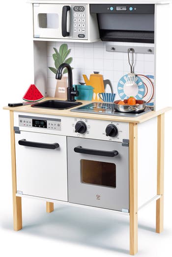 Additional features: The exhaust hood can be turned on and off with a wave of the hand, while the stove incorporates exciting sound and light effects, providing a stimulating and realistic cooking experience during play.