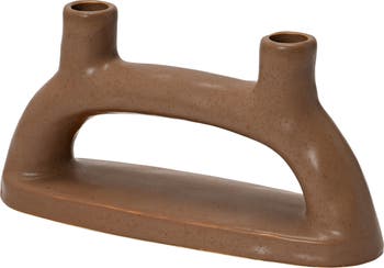 - Matte brown stoneware double taper holder