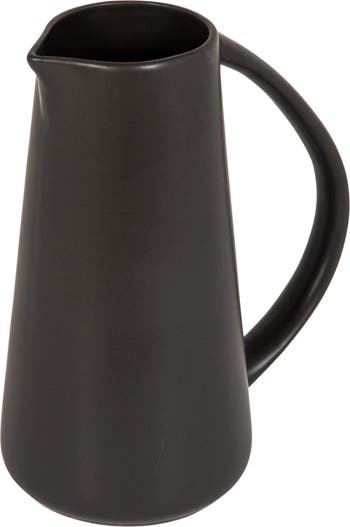 Discover the perfect blend of functionality and aesthetic appeal with this Modern Stoneware Pitcher in black, a versatile addition to your home decor and serving needs. This pitcher holds a generous 48 ounces of your favorite beverages while also doubling as an elegant vase for your floral arrangements.