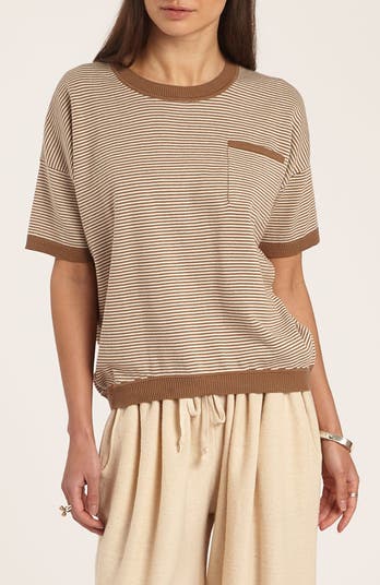 The elevated Modern Striped Tee. Designed with a longer back and drop shoulders an Easy fit finely striped crew. The softest organic Pima cotton for everyday wear. Fully fashioned knit for no waste. Ethically made in Peru.