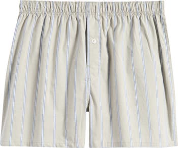 A crisp cotton weave made with a touch of enhanced stretch keeps you day-to-night comfortable in boxers topped with soft elastic to let you move and relax with ease. Loose without being baggy, they sport a single-button fly to add classic detailing to the everyday wearability.
