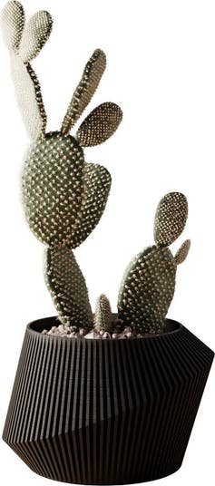 Sizes: Large: Height: 6 inches | Width: 9 inches Medium: Height: 4.5 inches | Width: 7 inches Small: Height: 4 inches | Width: 6 inches Looking for something custom? Feel free to reach out for personalized sizes or colors. Modernized design We created the planter to capture the clean, architectural lines of modern cityscapes, offering a bold and sophisticated addition to any room. With its striking angular design and textured surface, this planter serves as both a stylish statement piece and a perfect home for your plants. The drip tray/saucer is custom-fitted and designed to perfectly complement the planter. Made from 98% Plant-Based Materials | BioPlastic & Wood Fibers