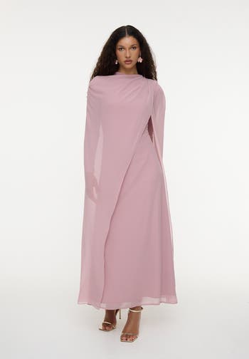 Designed for comfort with a touch of charm. This plain frosted pink maxi transitions beautifully from casual errands to elegant dinners with just a change of accessories.