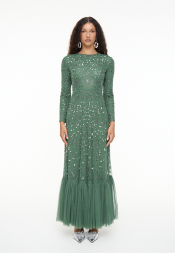 Radiate quiet confidence in this beautifully designed modest sequin dress. A perfect blend of soft shimmer and classic styling. It is made to make you shine subtly and gracefully. Ideal for those who love a bit of glamour with their grace.