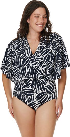 Elevate your swim style with our Modest Sleeved Surplice Blouson One Piece. Featuring a surplice neckline, sleeved blouson design with a full inner swimsuit, and full seat coverage, this cup less swimsuit offers modest elegance with a comfortable fit.