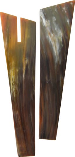Bring a contemporary look to your handcrafted table with a pair of the A-line Modish Salad Servers. Assorted color tones. This unique, hand-crafted horn product is sustainably made from the horns of the Ankole-Watusi, or Ankole Longhorn, a breed of cattle native to western Uganda and parts of East Africa. These distinctive horns are a recycled byproduct of the food industry and are purchased directly from the cattle keepers, providing revenue for local cattle keeping communities. The horn is then hand carved and polished according to Maadili designs by a small scale artisan community.