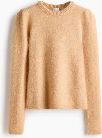 Jumper in a soft knit containing mohair and wool. Designed with a ribbed crew neck, long puff sleeves and ribbing at the cuffs and hem.