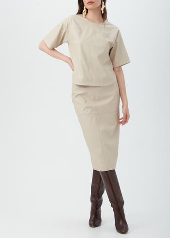 Boxy faux leather short sleeve top with back keyhole