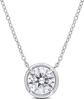 This dazzling halo circle pendant features 1 4/5ct of created moissanite, set in a sterling silver design. The brilliant moissanite stones are encircled by a halo, creating a captivating sparkle that catches the light with every movement. Perfect for adding a touch of elegance to any ensemble, this pendant is both timeless and sophisticated.