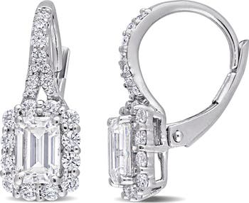 Julianna B. Moissanite Halo Leverback Earrings, Main, color, Sterling Silver