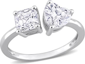 Add a touch of romance with this Heart-Shape and Octagon Asscher-Cut Moissanite 2-Stone Ring in Sterling Silver. The captivating combination of heart and octagon cuts gives this ring a unique, elegant flair. Perfect for marking a special occasion or expressing love, it offers a timeless design with a modern twist, set in sterling silver for lasting beauty.