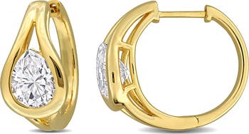 These striking moissanite hoop earrings combine bold style with dazzling brilliance. Crafted in yellow plated sterling silver, the hoops are adorned with brilliantly cut moissanite stones that catch the light with every movement. Their classic yet contemporary design offers versatile elegance. A radiant accessory that brings warmth and sparkle to any ensemble.