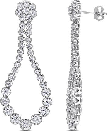 Make a dazzling statement with these created moissanite open pear shape dangle earrings. The brilliant stones are set in sterling silver, creating an elegant and eye-catching design with graceful movement. Their open pear shape adds a modern twist to classic sparkle. Perfect for special occasions or adding a touch of refined glamour to any outfit, these earrings blend timeless elegance with radiant charm.