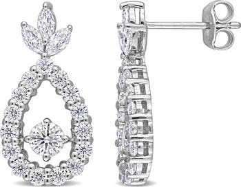 Radiate timeless elegance with these created moissanite teardrop earrings. The sparkling stones are beautifully set in sterling silver, creating a classic teardrop design that captures light from every angle. Their graceful shape adds sophistication and movement for a refined, eye-catching look. Perfect for special occasions or elevating any outfit, these earrings combine timeless beauty with radiant charm.