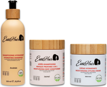 Textured hair deserves a routine that respects its unique needs. The EvasHair Moisturizing Range is specially formulated to nourish and protect Afro, curly, frizzy, and kinky hair types. Powered by high-performance natural ingredients, this three-step regimen deeply hydrates, strengthens, and revives dry and brittle strands - from root to tip. Each product is crafted with care in France and packed with botanical oils, fruit extracts, and plant-based nutrients to restore hair health and unlock natural radiance.