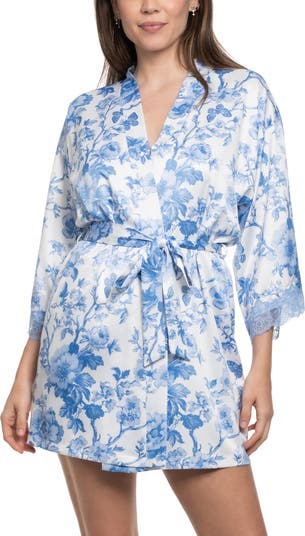 Give yourself a hug in the supple satin of this lace-trimmed wrap that's lightweight and flowy.