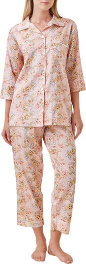 Drift off to dreamland in these timeless, floral-print pajamas cut at a cropped length from breathable cotton sateen.