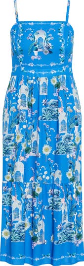 Head off to your next picnic date in this lovely sundress boasting a silky lining, allover floral print and a flowy skirt for comfortable movement.