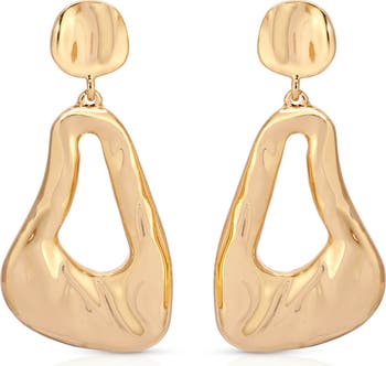 Softly sculptural earrings are plated in gleaming 18-karat gold and make a bold statement.