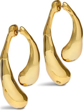 Molten teardrops plated in 14‑karat gold shine like miniature sculptures from your lobes in these strikingly modern earrings. Wear them in the interlocking front/back configuration or with the front half only.