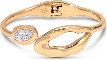 This hinge bracelet brings the perfect combination of organic, molten shine and sparkle with a marquise-cut crystal embedded within the sculptural form of 18-karat-gold plate.