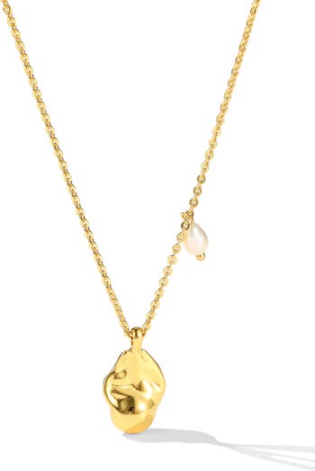 Classicharms Molten Pendant and Freshwater Pearl Necklace, Main, color, Gold