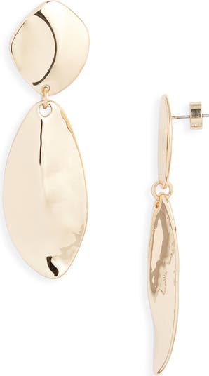 A hammered finish gives organic-inspired dimension to these golden drop earrings.