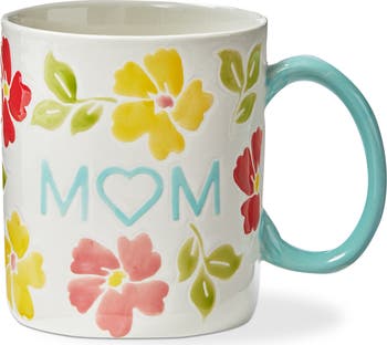 Celebrate the special bond with your mom by gifting her this delightful "Mom" mug, designed to brighten her day with every sip. Crafted from durable stoneware, this 16 oz mug features a charming hand-painted design adorned with vibrant, colorful flowers that beautifully encircle the word "Mom". Whether she enjoys her morning coffee, afternoon tea, or a cozy hot chocolate, this mug is perfect for all her favorite beverages. Its dishwasher-safe feature ensures effortless cleaning, allowing her to spend more time enjoying her drink and less time on chores. Please note that the mug may get hot when used in the microwave, so handle with care. With dimensions of 5 inches in length, 3.75 inches in width, and 4 inches in height, this mug is not only functional but also a lovely addition to her drinkware collection. Show your appreciation and love for her with this thoughtful and practical gift that she can cherish for years to come.